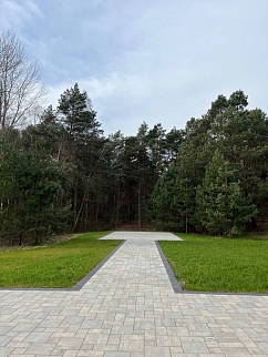 Красивая территория с видом на лес.