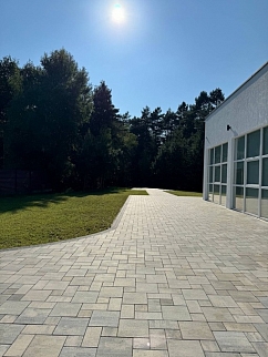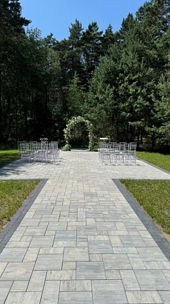 Красивая территория с видом на лес.